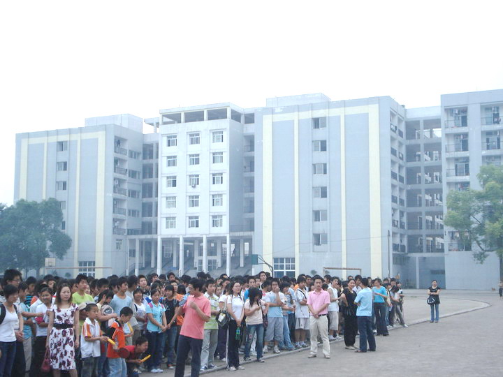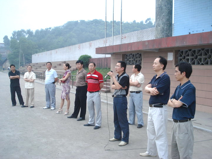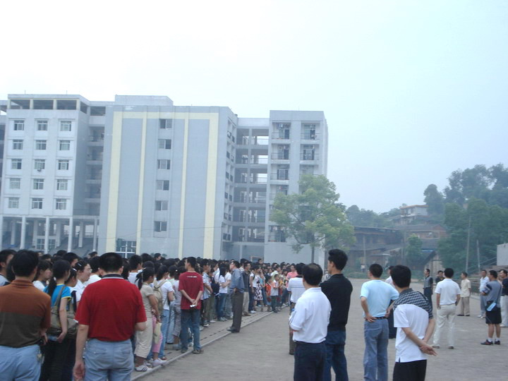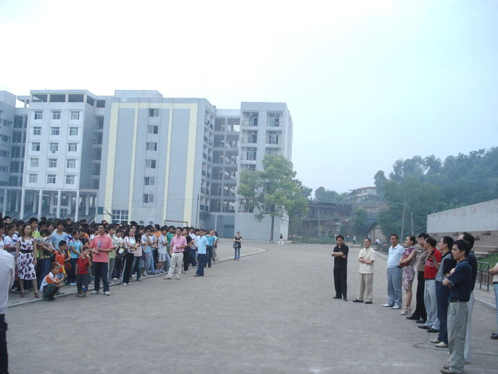 2008年5月12日地震后,学校迅速组织住校生到运动场,由李校长等领导及地理老师徐强等老师向住校生讲解了地震知识及抗震方法。(行政办)
