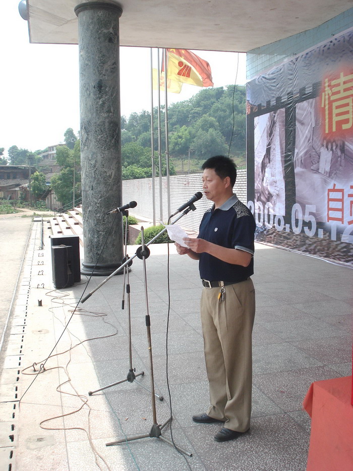校长李卫东与谢兰、李进两位老师进行抗震救灾诗朗诵
