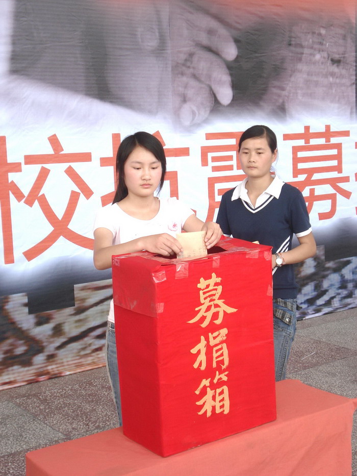 校各年级学生代表为灾区捐款(1)