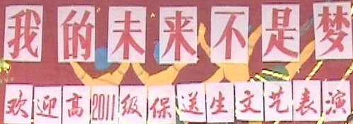 同学们,我还将告诉你们,你们将来到的这一个年级是我校创造过辉煌业绩的年级,朱丹、肖海燕、程扬、刘磊、韩芸、张婉、吴巍、邱锋就出自这个年级。我还要告诉你们,在自贡对2008级四次模底统考统阅中,这个年级以入出口成绩300%以上的优异成绩书写着旭川的辉煌。我坚信有你们的加入,有我们共同的努力,旭川办学史上还会有新的更辉煌的篇章,让我们一起共同托起旭川明天的太阳。